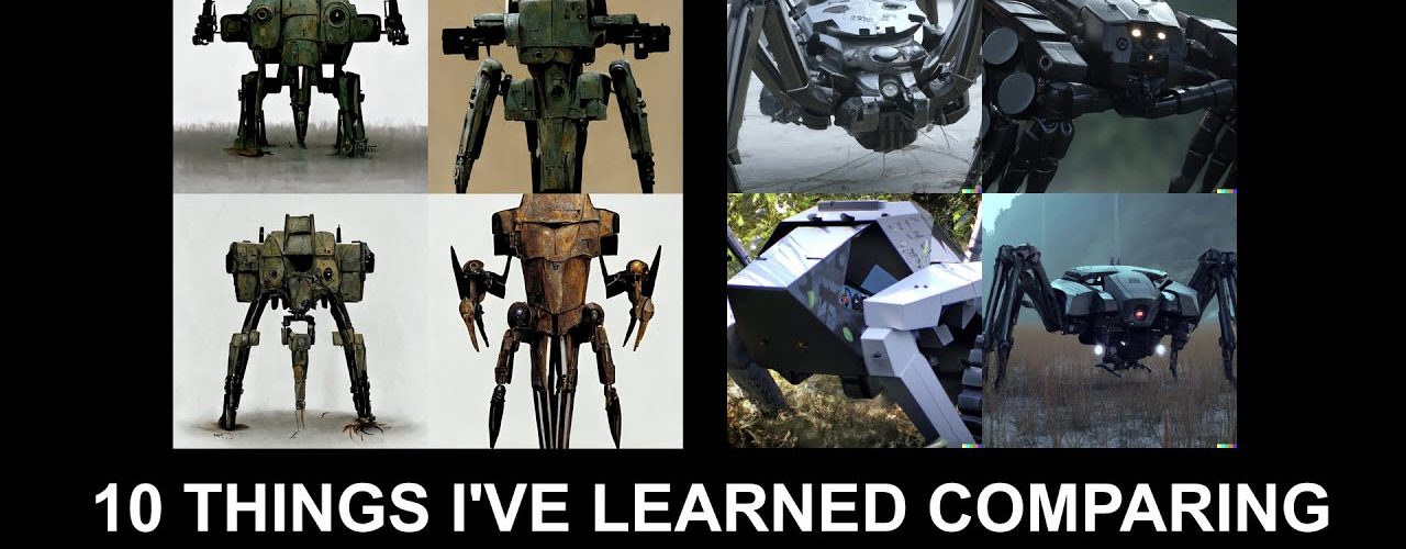 As many of you know, I’ve been playing a lot recently with AI generated artwork, especially creating robot designs. However, one thing I’ve been unable to achieve in midjourney (the AI I’ve been currently using) is a 3/4 view of the robot designs. All of them end up being frontal view only. This is likely because the images the AI trained on either haven’t been 3/4 view, or maybe they have but that particular attribute hasn’t been labeled, and so the AI hasn’t learned what a 3/4 perspective is. While I’m sure this will be fixed in the future, I’ve been playing with giving the robots depth by projecting the artwork onto simple 3d geometry. So this tutorial discusses this technique which I used to make my painting “The Final Push”.