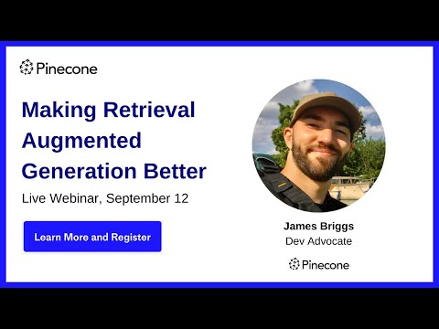 Join, Pinecone Developer Advocate, @jamesbriggs as he delves into retrieval augmented generation (RAG) and explores its role in enhancing Large Language Models (LLM) and chatbot applications. In this webinar, we’ll explore the nuances RAG, the different ways that it can be applied, and the impact of each approach for augmenting language models and revolutionizing the capabilities of chatbots. This will provide a holistic understanding of how RAG can serve as a transformative force in GenAI.