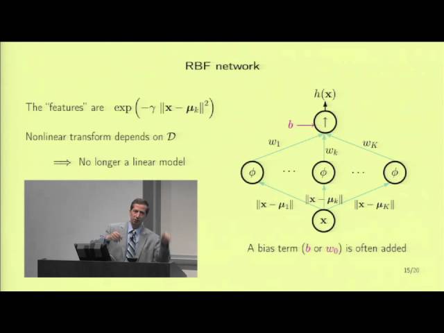 Radial Basis Functions – An important learning model that connects several machine learning models and techniques. Lecture 16 of 18 of Caltech’s Machine Learning Course – CS 156 by Professor Yaser Abu-Mostafa. View course materials in iTunes U Course App – https://itunes.apple.com/us/course/machine-learning/id515364596 and on the course website – http://work.caltech.edu/telecourse.html